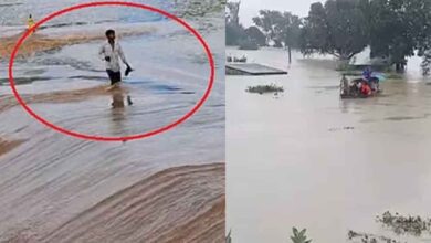 छत्तीसगढ़-बलरामपुर में उफनती नदी के बीच एनीकट पार, मोबाइल देखते हुए युवक ने खतरे में डाली जान