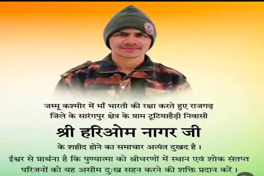मुख्यमंत्री डॉ. यादव ने जम्मू-कश्मीर में शहीद सैनिक श्री हरिओम नागर को दी श्रद्धांजलि