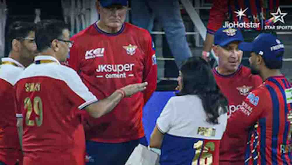 मैच खत्म होने के बाद लखनऊ सुपर जायंट्स के मालिक संजीव गोयनका, कप्तान ऋषभ पंत और कोच जस्टिन लैंगर को मैदान पर गहन चर्चा करते देखा गया. सोशल मीडिया पर वायरल वीडियो में गोयनका दोनों से कुछ कहते नजर आए, जबकि ऋषभ पंत भी अपनी बात रखते दिखे. इस बातचीत ने फैन्स के बीच कई तरह की अटकलों को जन्म दे दिया है. क्या यह रणनीति को लेकर चर्चा थी या फिर हार पर नाराजगी, ये अनुमान लगाना मुश्किल है.