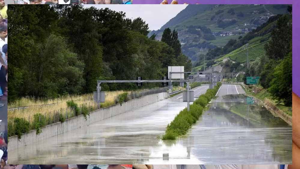 पश्चिमी देश स्विटजरलैंड में भी बारिश के चलते हालत भयावह है. यहां भीषण बाढ़ के कारण कई सड़कें और ट्रेन की पटरियां डूब गईं हैं. हाल ही में 30 जून को स्विटजरलैंड के वैलेस क्षेत्र में ग्लेशियर पिघलने और भयंकर तूफान के कारण सड़कें और रेलवे लाइनें जलमग्न हो गईं. वहां मौजूद लोगों के वीडियो में सिएरे के एक गोदाम के आसपास बाढ़ का पानी नजर आया.