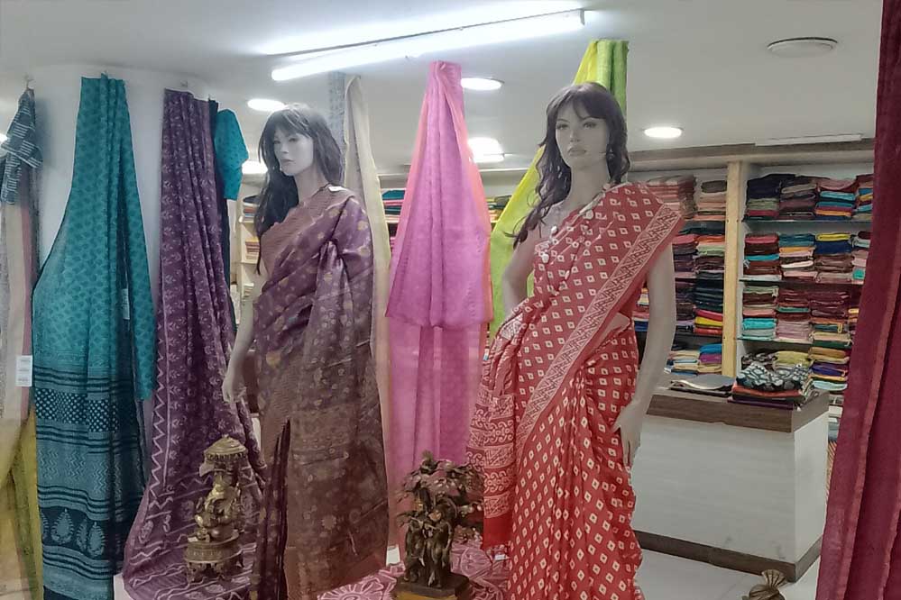 साड़ी पर उकेरी नर्मदा की लहरें