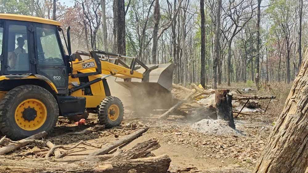 धमतरी जंगल में बड़ा एक्शन: अवैध कब्जों पर चला बुलडोजर, प्रशासन सख्त