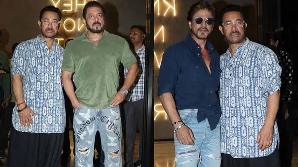 बॉलीवुड के तीनों दिग्गज सुपरस्टार शाहरुख खान, सलमान खान और आमिर खान को एक साथ देखना दुर्लभ होता है, लेकिन रमजान के मौके पर यह नजारा देखने को मिला। हाल ही में सलमान और शाहरुख, आमिर खान के घर पहुंचे, जिसका एक वीडियो सोशल मीडिया पर वायरल हो रहा है।